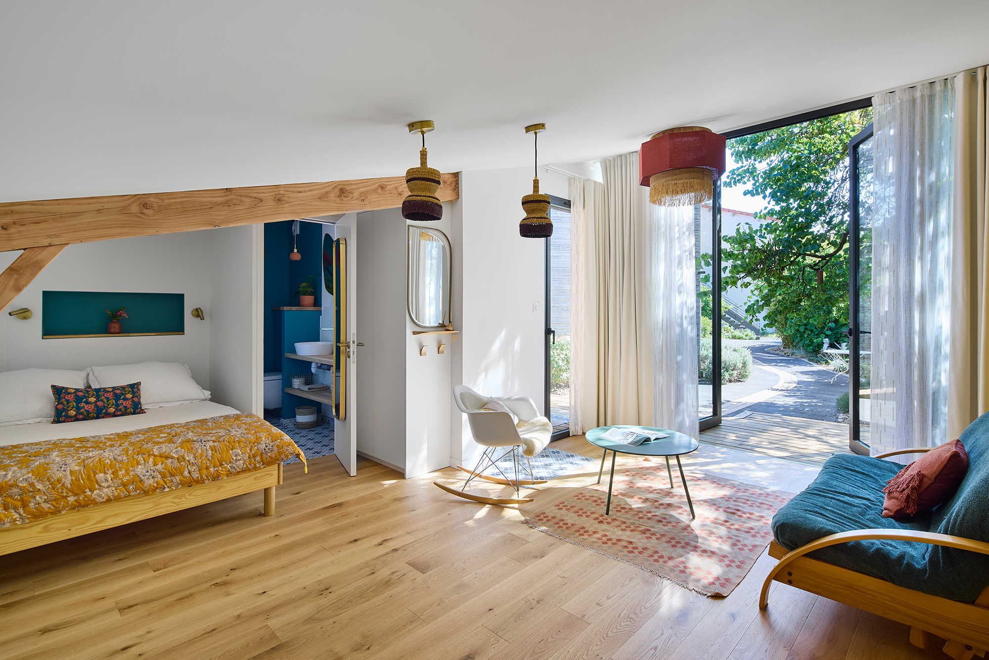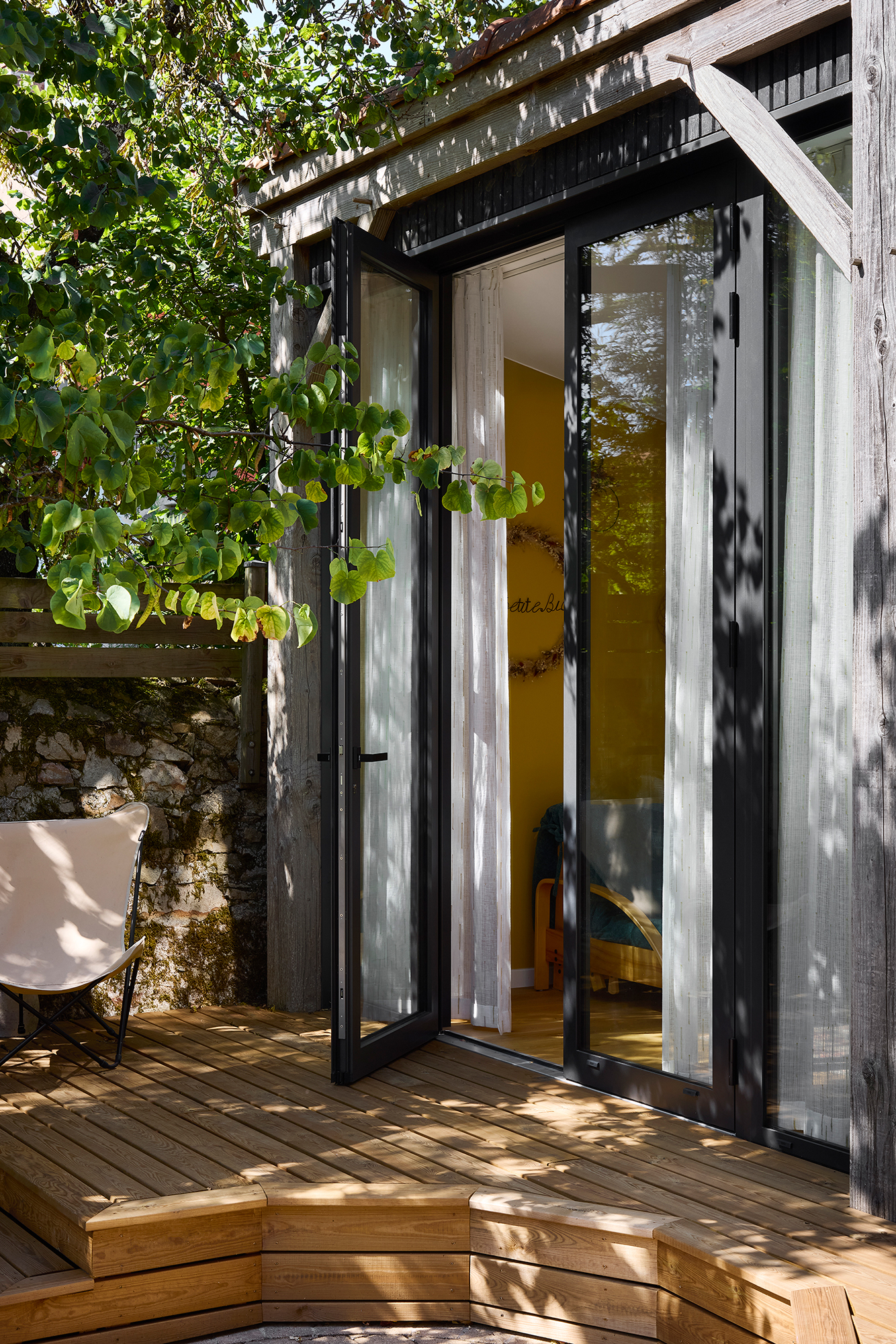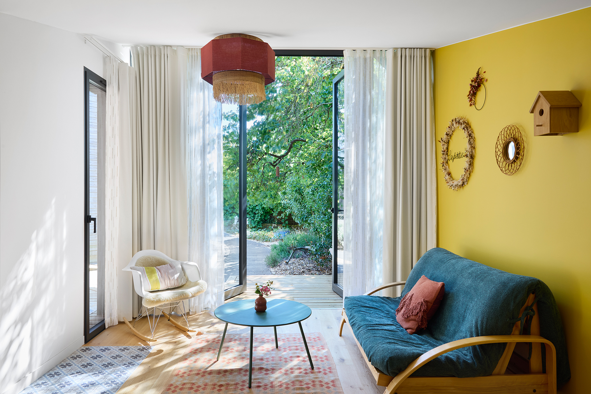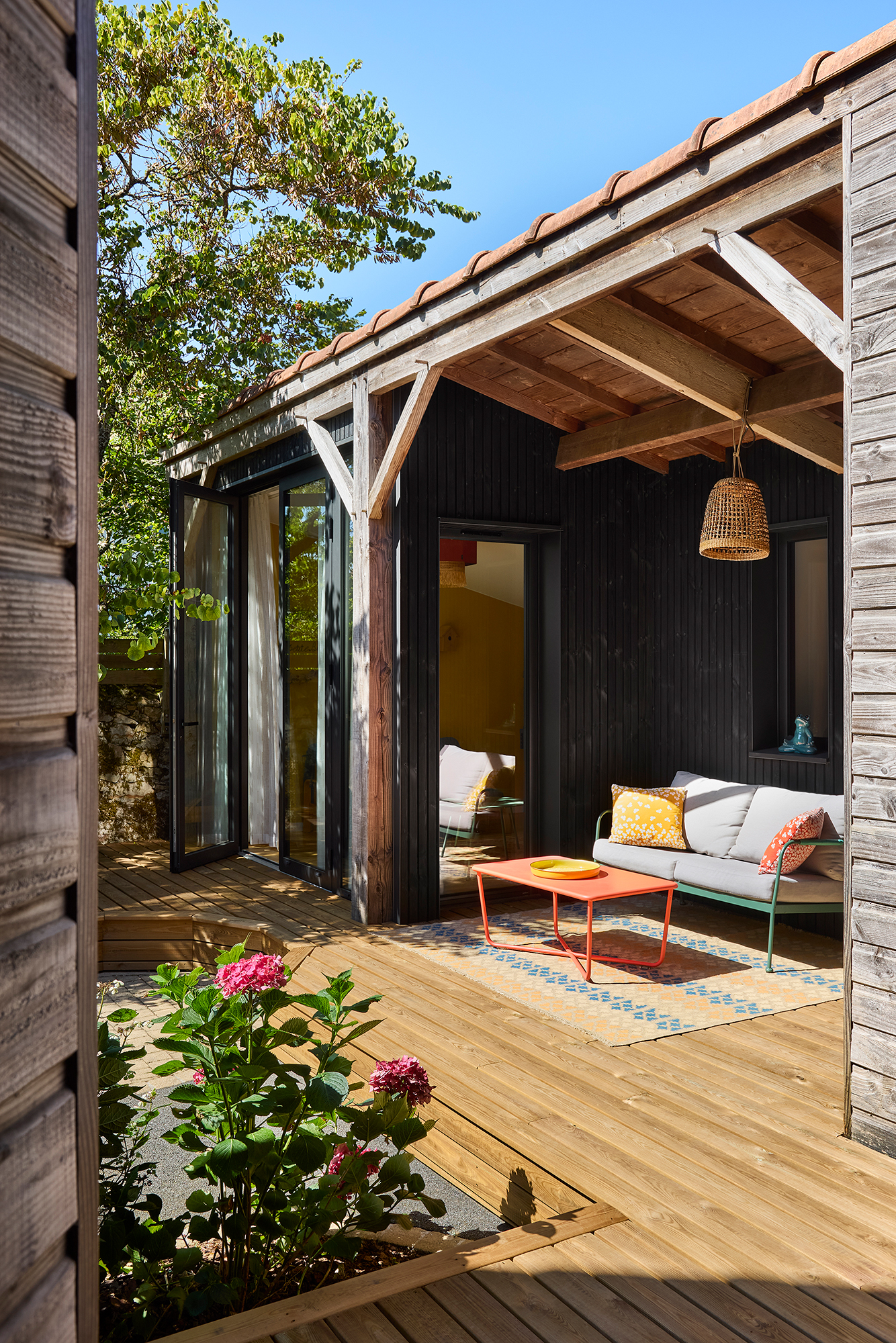 Transformer un préau en véritable lieu de vie : tel était le défi de ce projet. Nous avons conçu une extension en ossature bois de 25 m², pensée pour répondre à un double usage : espace de travail et location courte durée.